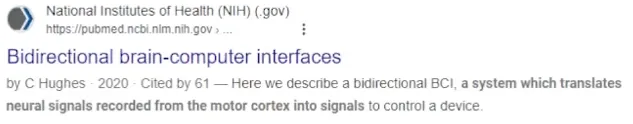 This epitomizes a key flaw in her thinking, namely, flashing up papers such as this as evidence that certain technologies already exist. “Describing” a bidirectional BCI does not mean that one exists. In fact, the paper is a review chapter, and one only has to read the abstract to find