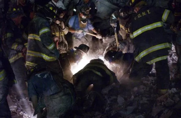 In fact, photographic evidence reveals that rescue workers were entirely unconcerned about a raging inferno beneath them: