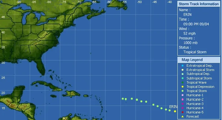Wood (2011, p. 396) seems surprised that “the public was not widely alerted to [Erin],” given that Erin was similar in size to Hurricane Katrina (2005) and with a greater Accumulated Cyclone Energy. However, Katrina achieved Category 5 status, whereas Erin peaked at Category 3 for 24 hours on September 9-10 and was Category 1 by the morning of September 11, as data cited by Wood shows. More importantly, Katrina made landfall and caused widespread damage. The two hurricanes simply did not pose the same level of threat.