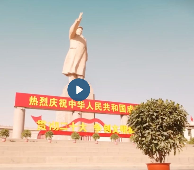 In case the propagandistic nature of the state-approved trip across China could not get any more obvious, Part 3 is filmed in Kashgar and involves a trip to one of the few remaining statues of Chairman Mao on the 76th anniversary of the founding of the PRC.