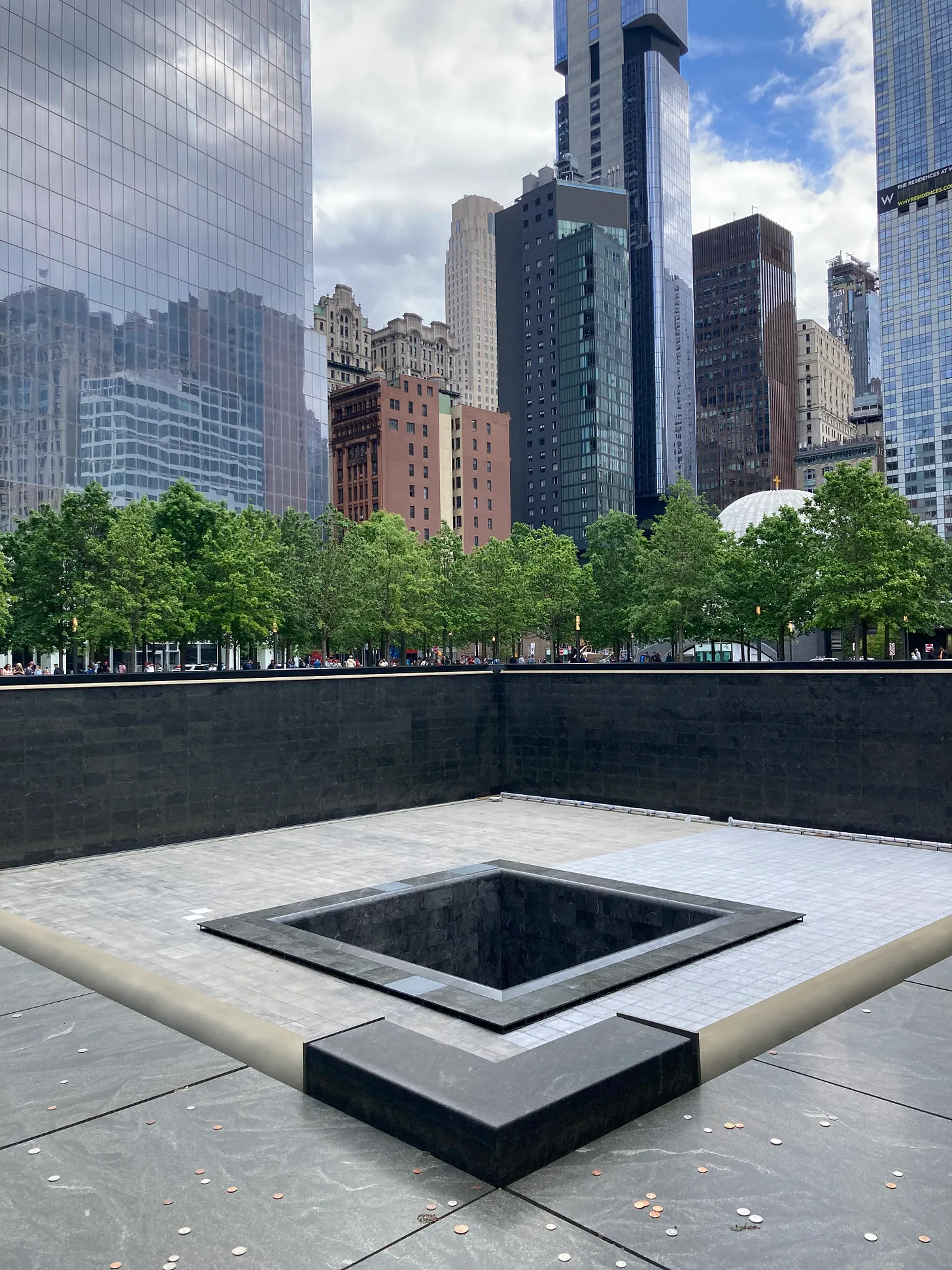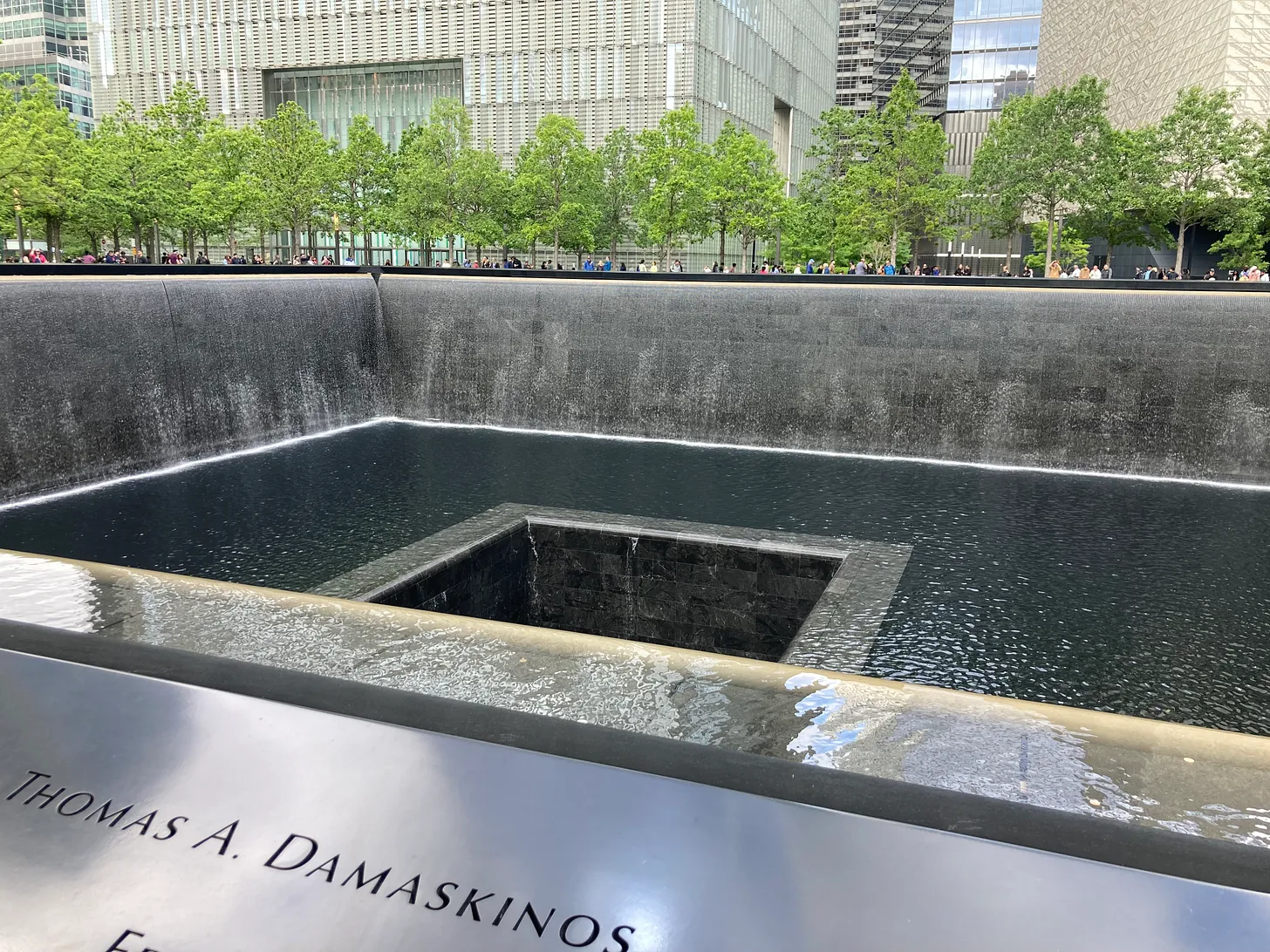 I remain curious about what is in the bottom center of each memorial pool. Although the public cannot see that space from ground level, people in the surrounding high-rise buildings presumably can.