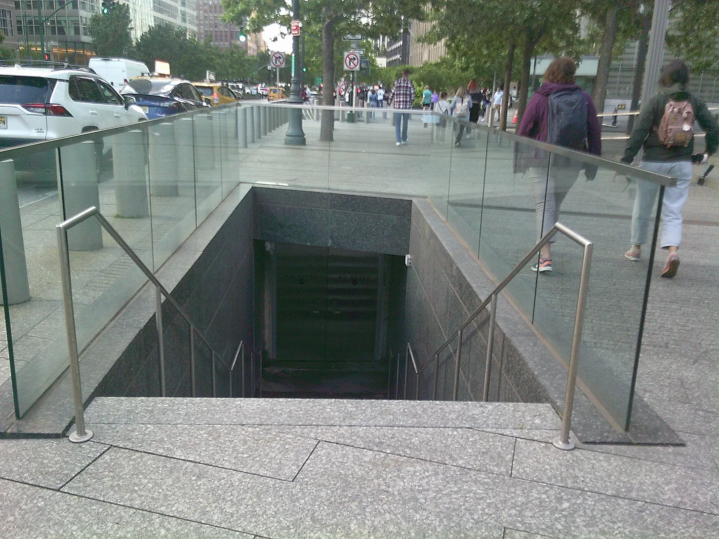 I was interested in two sets of stairs (both close to One World Trade Center) leading down to an underground section of the site that is off limits to the public: