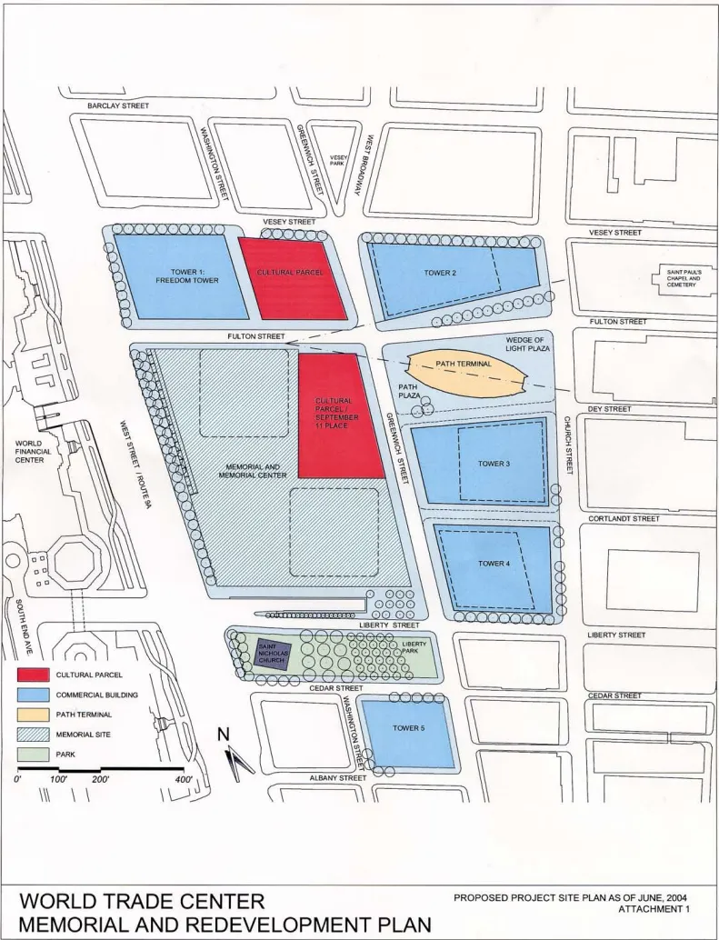 Below is the site plan as per the Lower Manhattan Development Corporation in June 2004.
