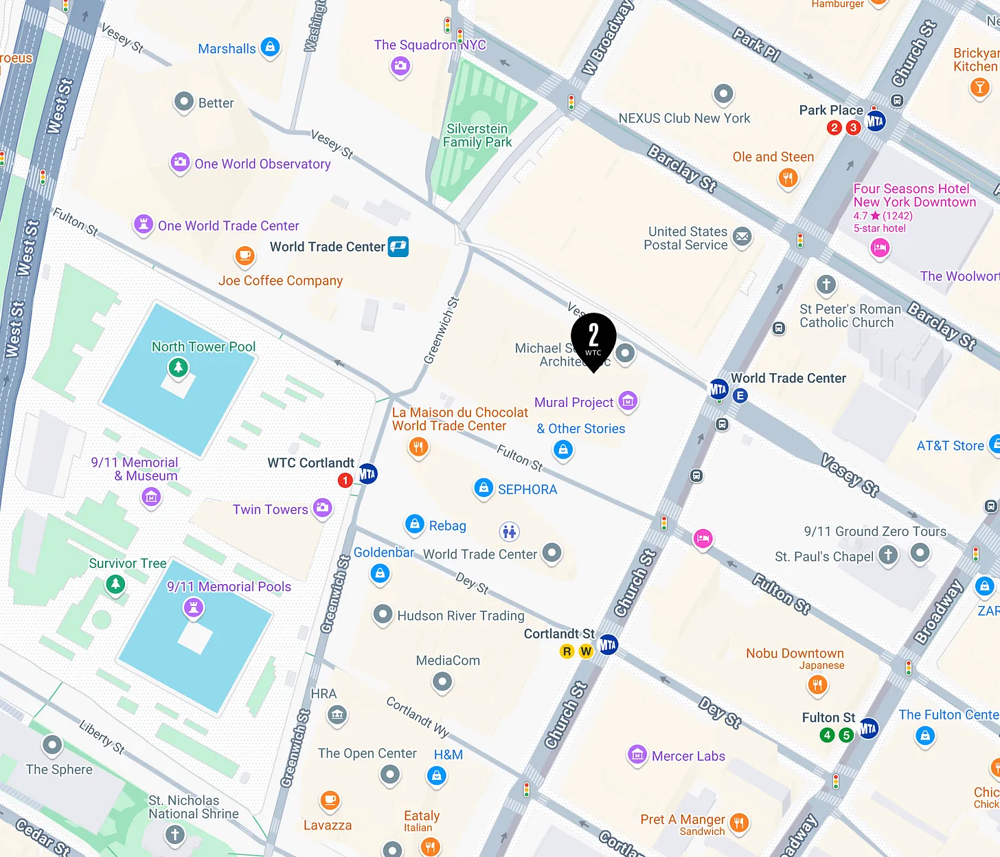 The new WTC 2 was always slated to be built in the block marked “2” below:
