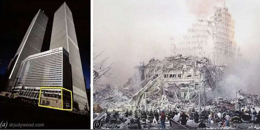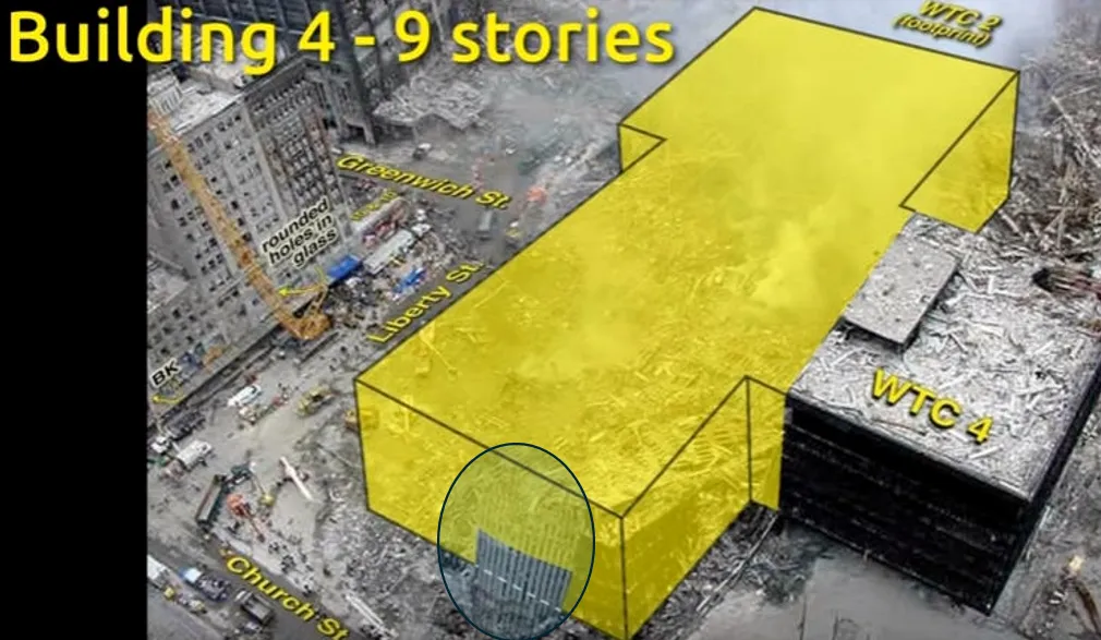 I have long been puzzled by claims that the extent of the damage to WTC3 and WTC4 is difficult to explain. We know, to quote Dr. Judy Wood, that each of the Twin Towers was “peeled apart like a banana,” and although virtually all of their interior contents were dustified, large sections of the outer walls can be identified in the wreckage.