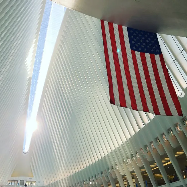 is in alignment with the sun’s solar angles on each September 11, from 8:46 am, when the first plane struck, until 10:28 am, when the second tower collapsed. Its central skylight fits this alignment and washes the Oculus floor with a beam of light.