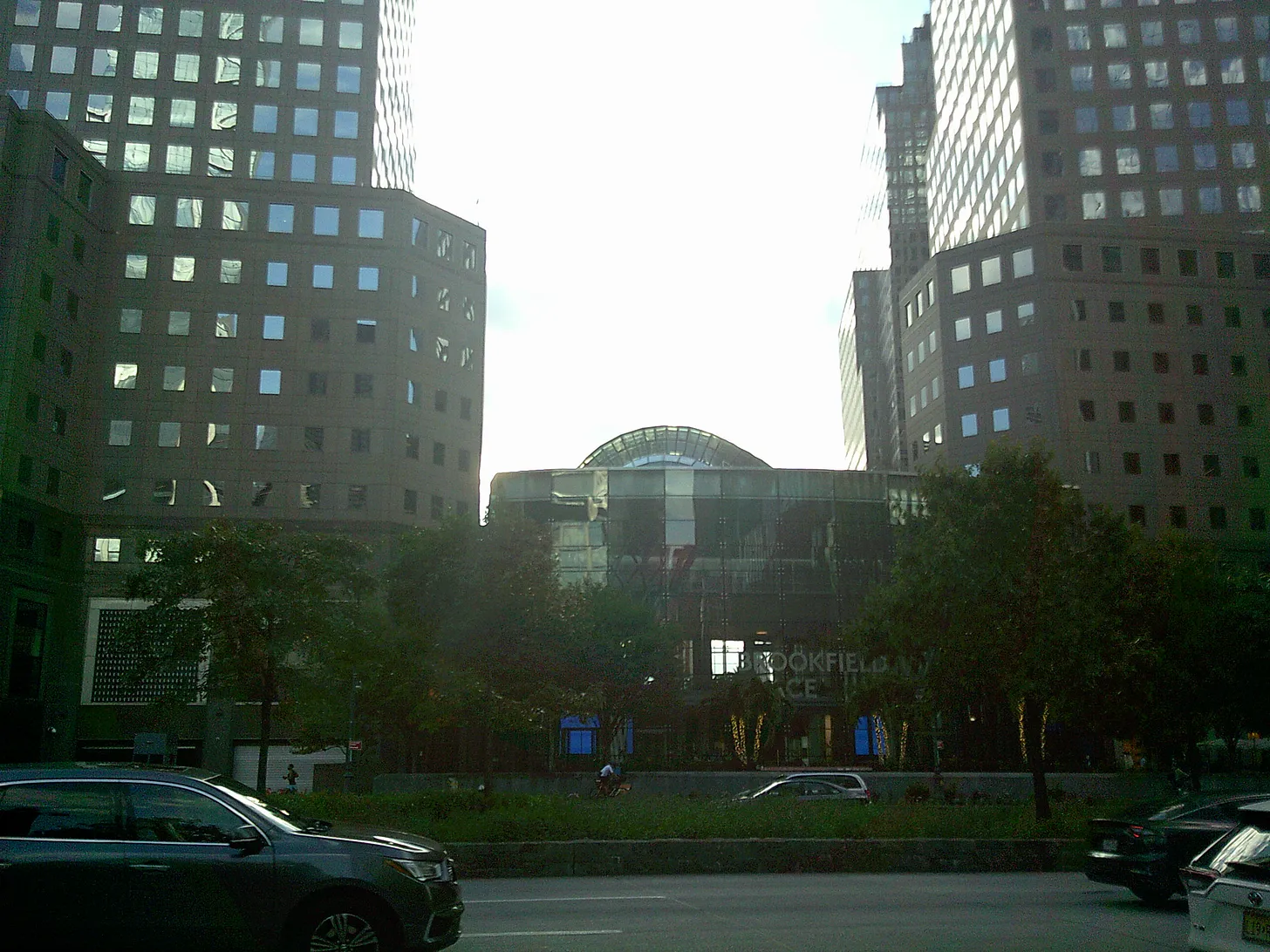 Like the Millennium Hotel, the Winter Garden is today barely visible from the WTC site because of a new structure placed in front of it, in this case, the entrance to Brookfield Place.