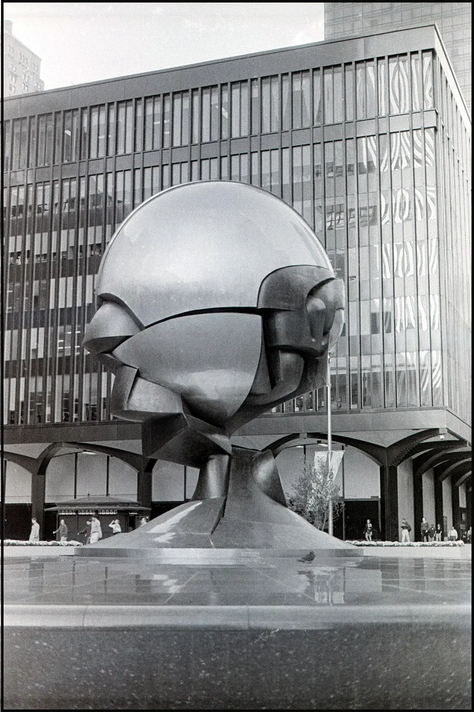 “The Sphere” is a cast bronze sculpture by German artist Fritz Koenig that stood in the Austin J. Tobin Plaza of the WTC from 1971 to 2001.