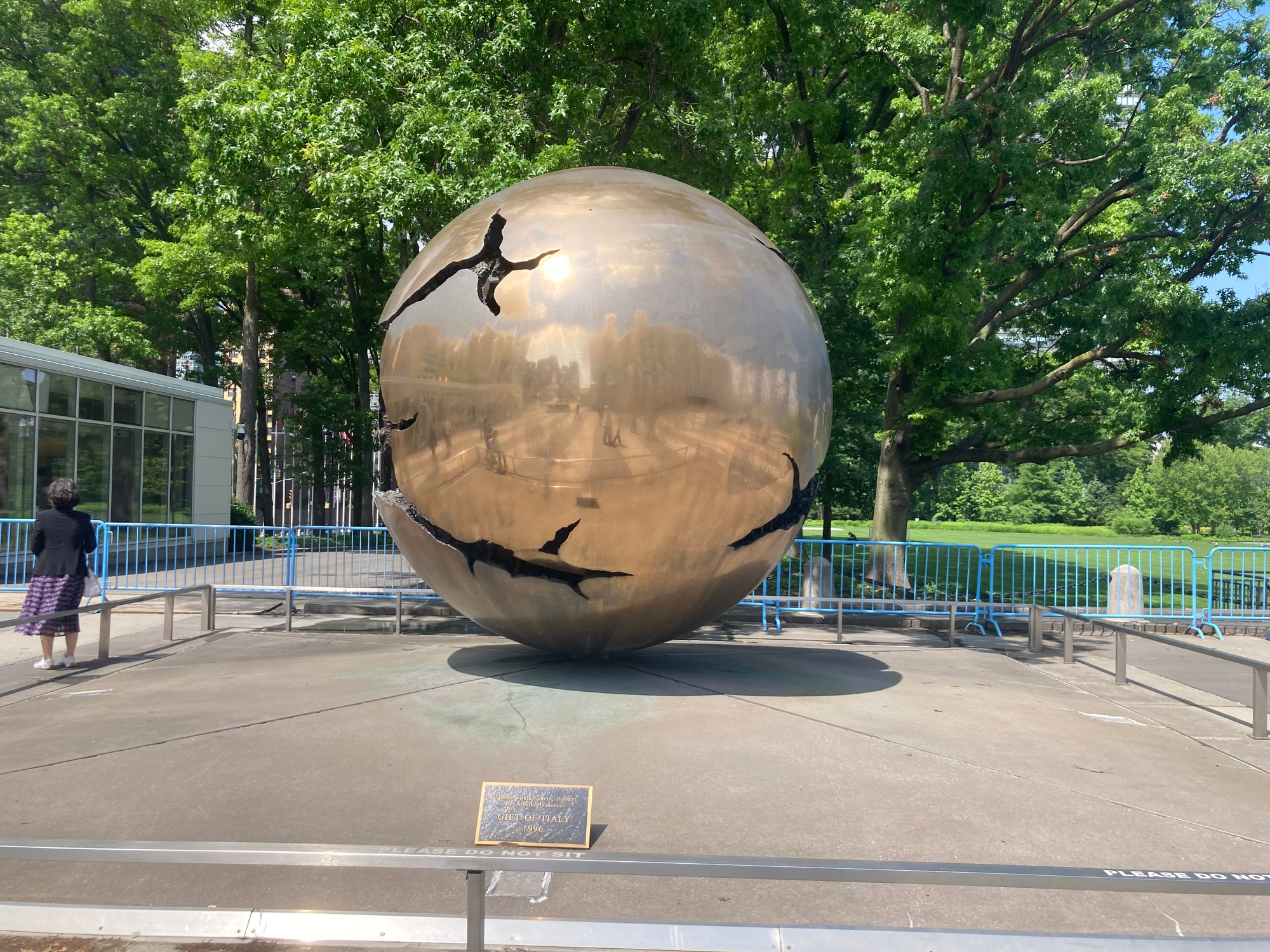 By way of contrast, when I visited the United Nations, I came across Italy’s 1996 gift, which, though undamaged, ironically appears (because of its design) more damaged than the sphere!