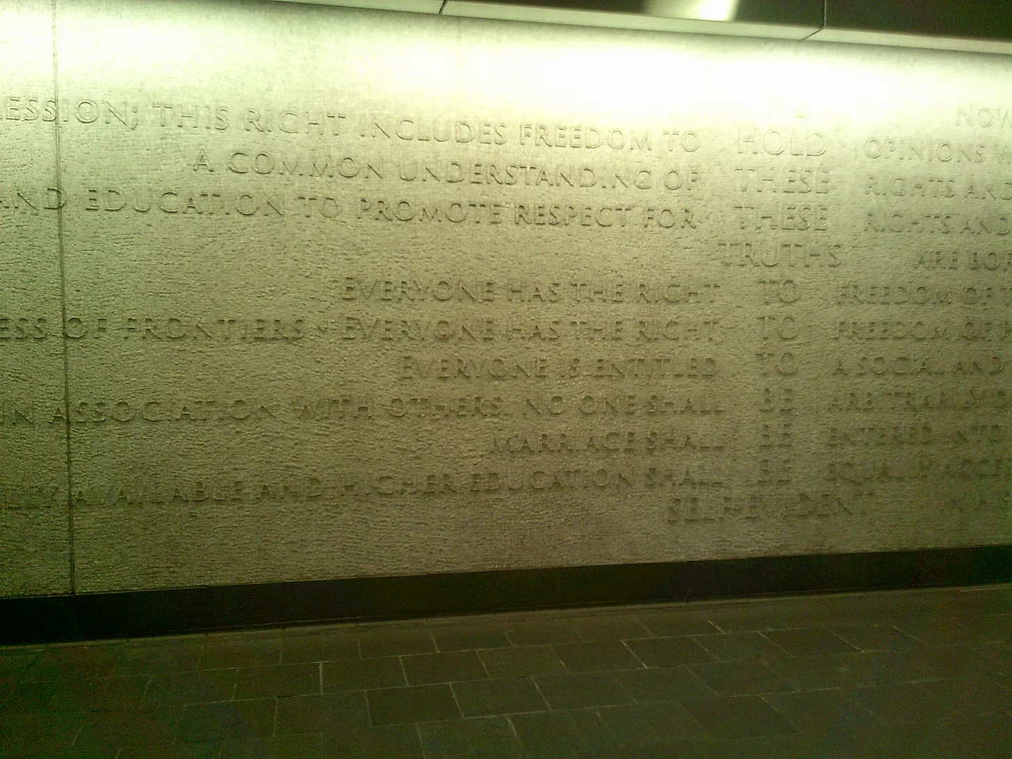 The exception was WTC-Cortlandt, where a veritable artwork had been formed along the walls by Ann Hamilton, showing 3D text from the 1776 Declaration of Independence and the 1948 United Nations Declaration of Human Rights.