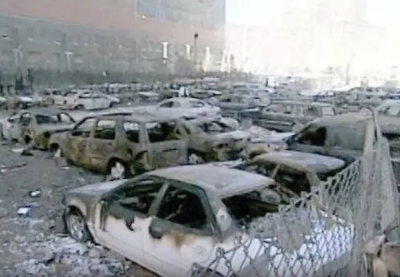 The mysterious vehicle fires were in fact much more widespread than just this one area. For example, even before the Twin Towers were destroyed, an apparent vehicle fire was taking place right outside one of them.