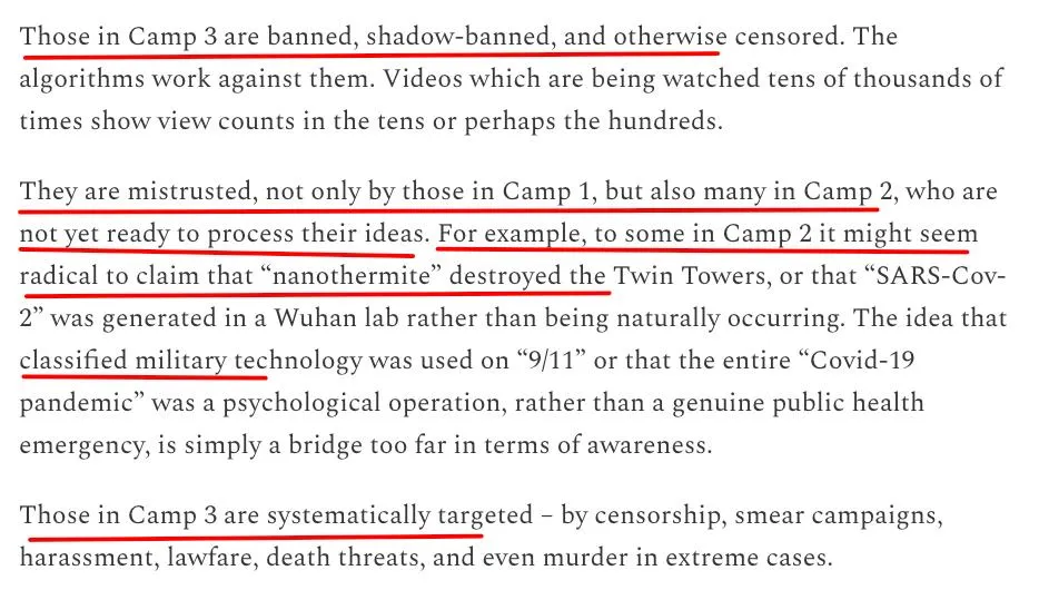Incidences like this are precisely why I developed the "Three Camps of Awareness" framework. It provides a clear and objective means of distinguishing between Camp 2 and Camp 3. Camp 2 works to block the truth, Camp 3 to advance it.