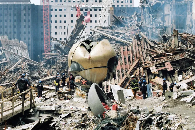 Admittedly, the survival of "The Sphere" by Fritz Koenig (situated roughly where the word "Center" is in the above diagram) also requires explanation, given that it was directly in the line of debris ejected from both WTC1 and WTC2.