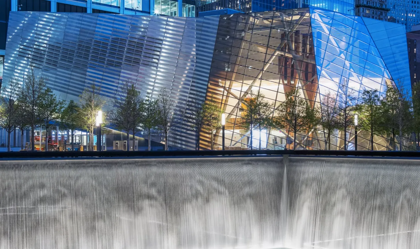 The first thing one sees of the museum is its above-ground pavilion, designed by the Norwegian architectural firm Snøhetta. It was commissioned in 2004, but did not open to the public until May 2014, when the museum was officially dedicated in a ceremony led by President Obama and 9/11 Memorial Chairman Michael Bloomberg.