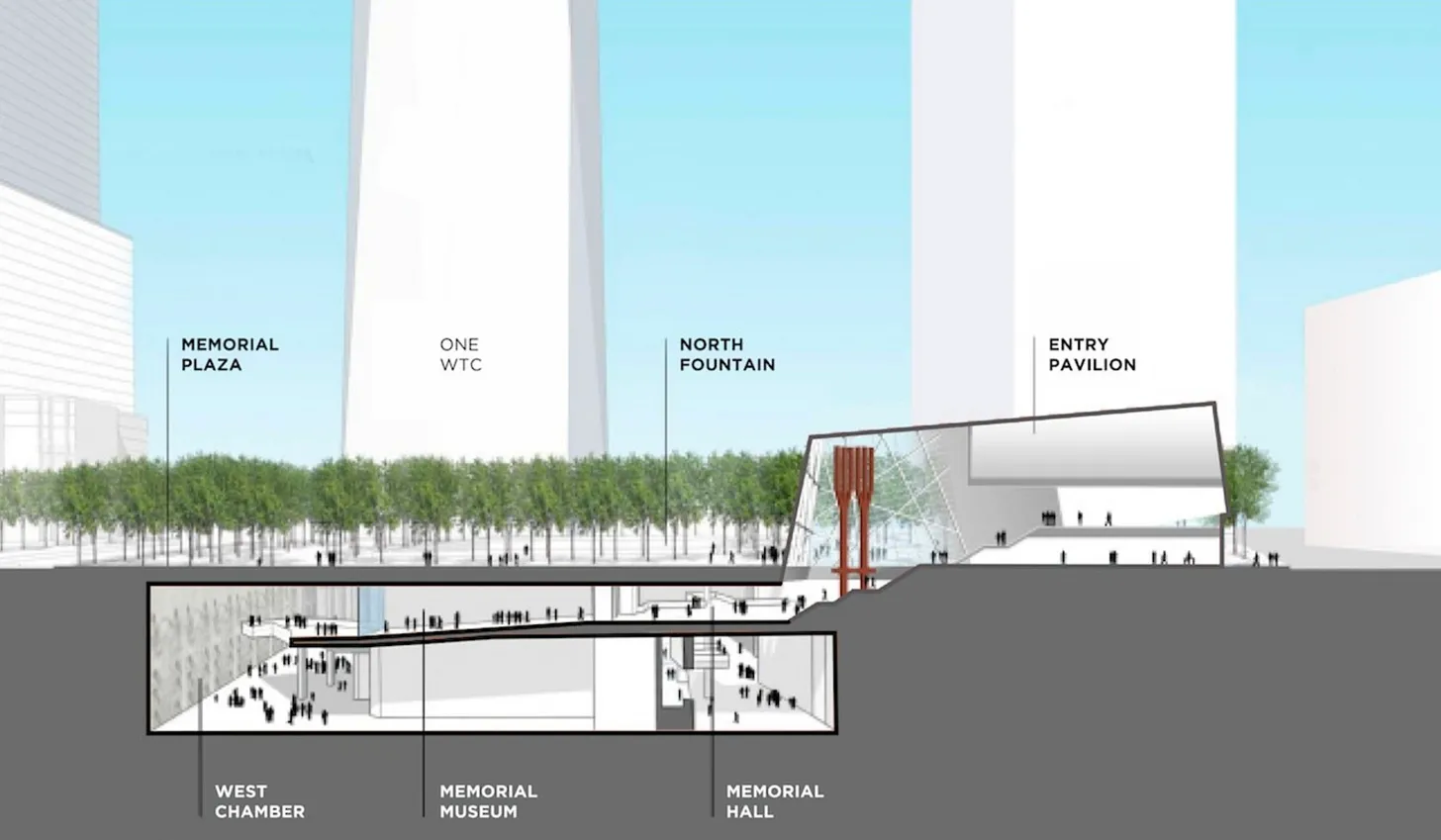 The 9/11 Museum pavilion occupies a relatively small area above-ground. According to the Guardian in 2014,