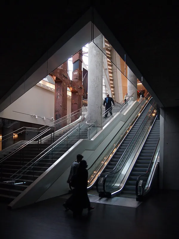 According to one architectural review, the limitations imposed on Snøhetta’s pavilion mean that it was reduced to a “forgettable blandness.” This seems like a fair assessment. Nothing interesting happens there, apart from two trident beams from the Twin Towers greeting visitors as they begin their descent below ground.