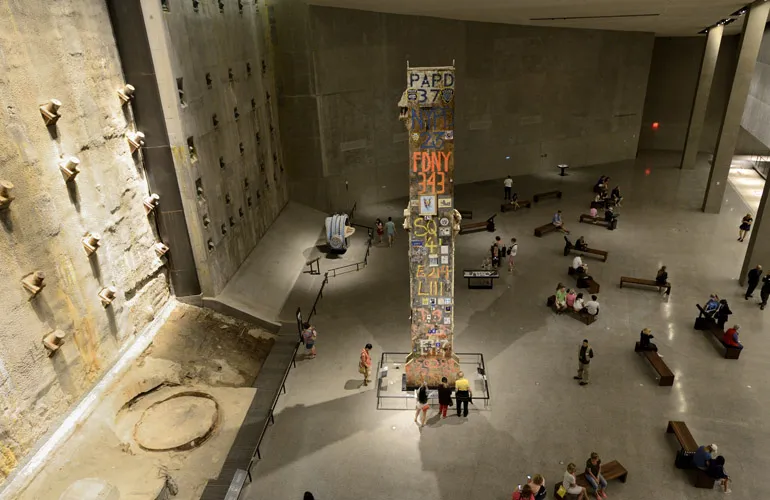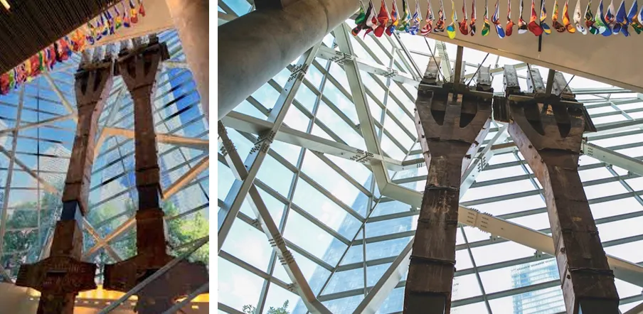 The beam in the center of the picture is the “Last Column” which, as its name suggests, was the final piece of steel to be removed from “Ground Zero.”