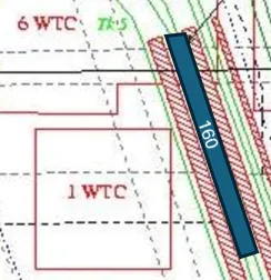No explanation is given as to why the slurry wall is cut off by a diagonal wall that has been artificially inserted. An architectural schematic does not reveal any obvious purpose to the space behind the wall:
