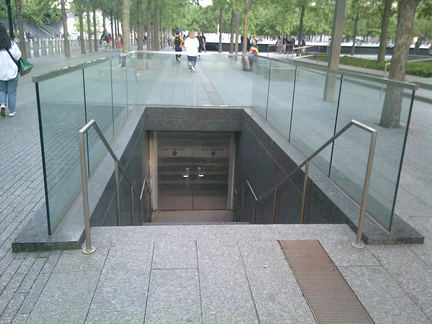 Visitors steadily move down and towards the spaces beneath the memorial pools, where the two permanent exhibitions are contained. They thereby unconsciously mimic the official explanation that the Twin Towers “collapsed.”