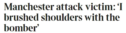 I bumped into him [Abedi], actually. The police told me afterwards. Apparently as I rushed through some doors, you see us on CCTV coming together. [...] A few moments later the explosion happened.