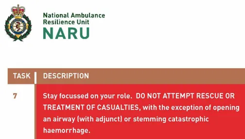 This is in accordance with professional standards, i.e., the National Ambulance Resilience Unit Major Incident Initial Action Cards, Task 7: