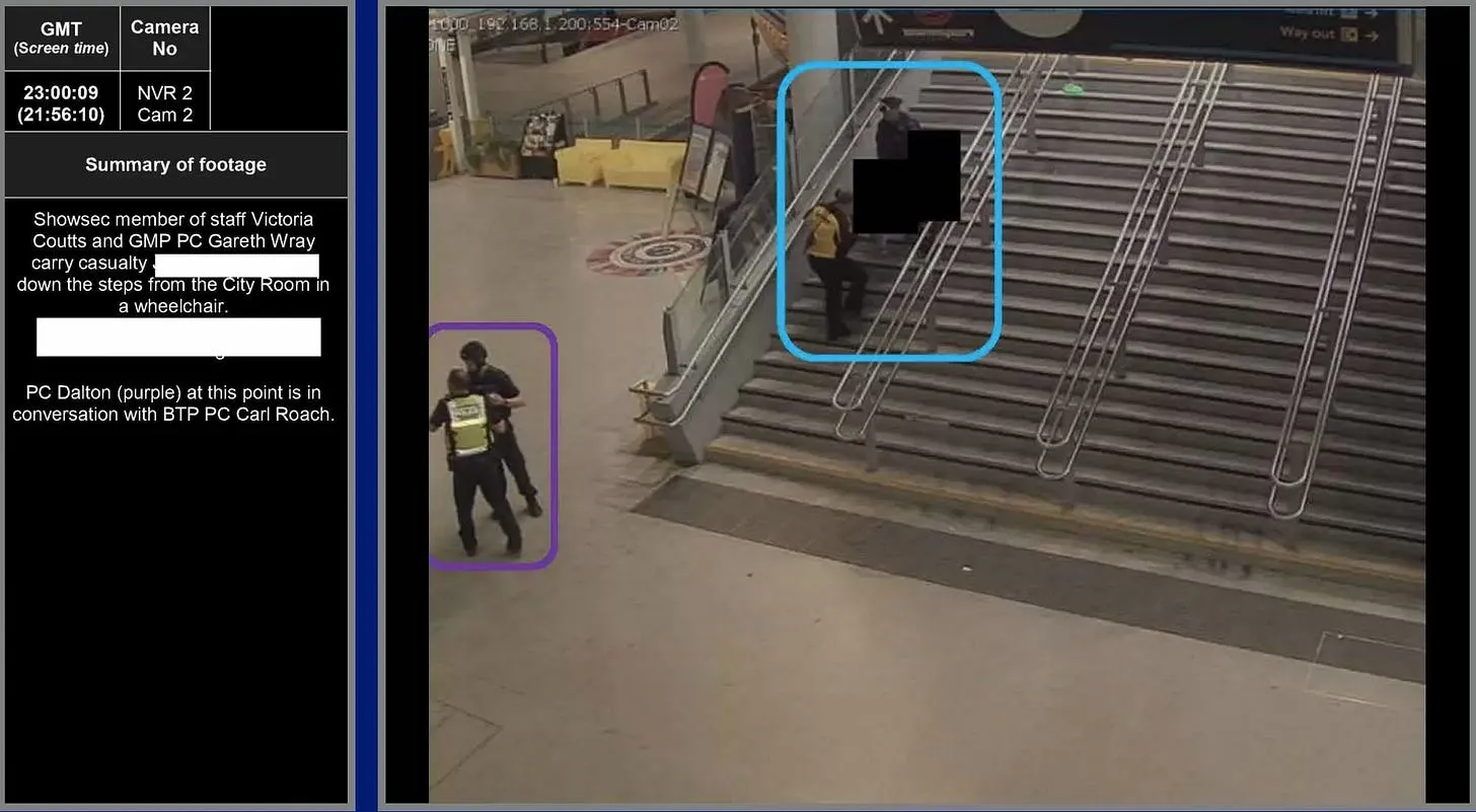 Following the detonation of Salman Abedi’s rucksack device, numerous first responders rushed to the City Room as the public fled. Many of them belonged to British Transport Police (BTP), Emergency Training UK (ETUK), and the contracted security provider, Showsec.