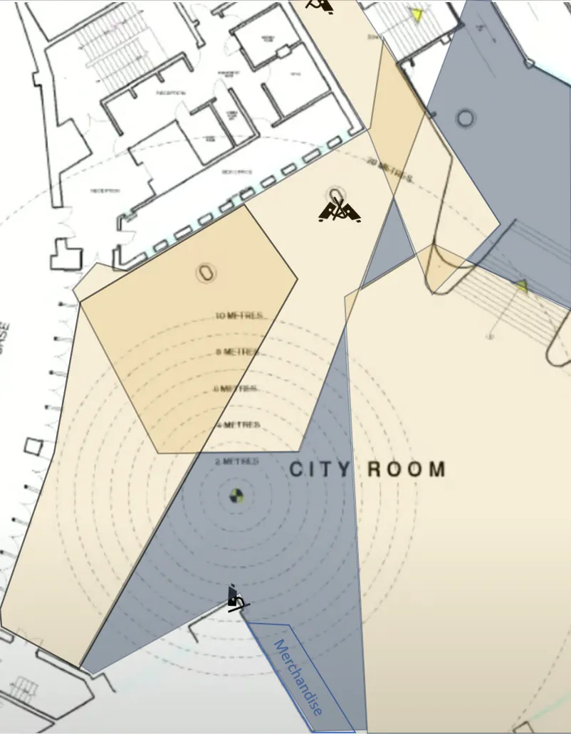 - Lewis Brunton: “I moved towards the right corner, not too far from the box office on my right−hand side. I would say I was around 3 to 4 metres from the nearest exit door, which is in front of me” (p. 46).
