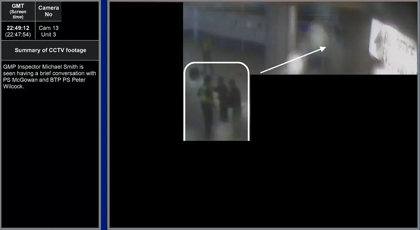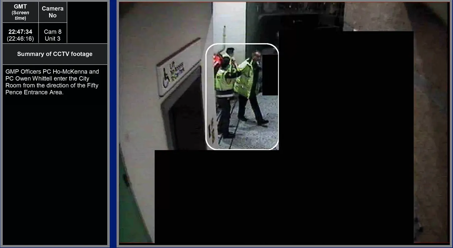 Second, the Barr footage and the Parker photograph could not have been taken at 22:35, as has been hitherto assumed from Barr telling Hall that he took the footage approximately four minutes after the bang. Rather, we should place the timing somewhere between 22:43:11 and 22:47, when GMP officers entered the City Room (who are not visible in the footage).