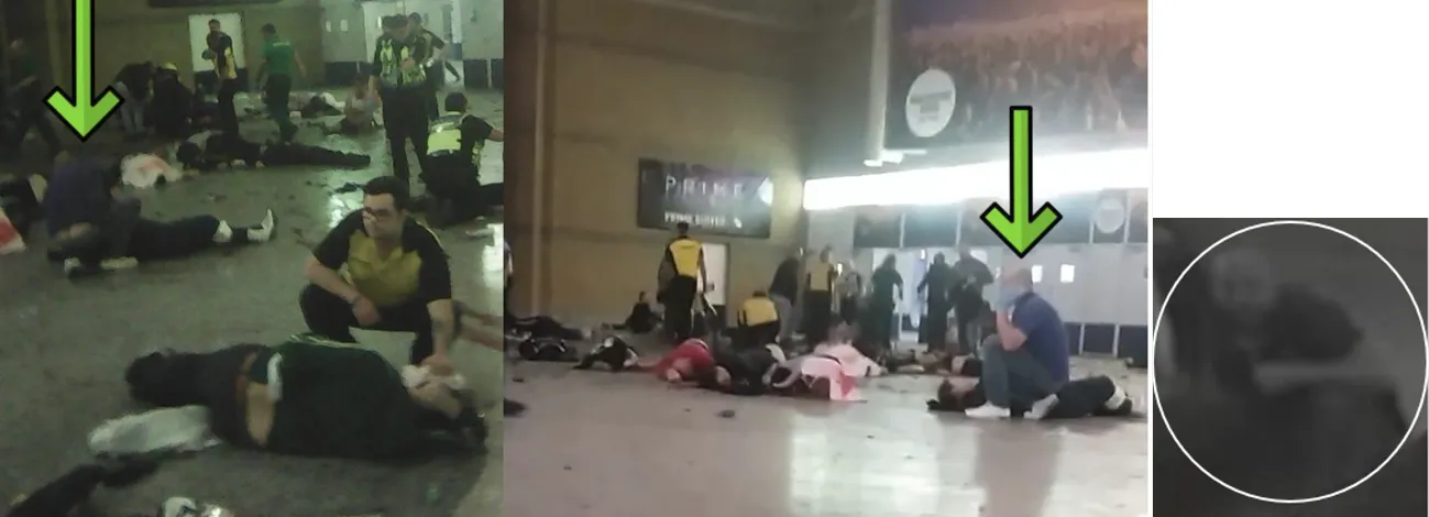 Two main forms of primary empirical evidence are publicly available, namely, CCTV imagery and camera phone footage/imagery. In terms of CCTV imagery, a maximum of four (and a minimum of one) named victims can be seen in position, which is an insufficient evidence base. The three camera phones show nothing that matches with the official count of 58 seriously injured people (51 of whom had to be carried to the CCS) or the named victims whom we should expect to see from the BBC diagram.