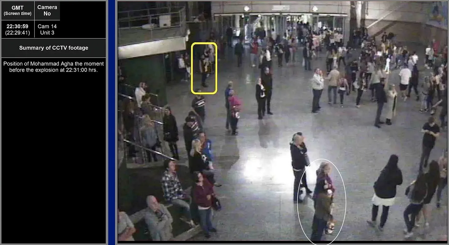 The immediate aftermath in the City Room is recorded in three publicly available pieces of camera phone evidence: (i) 15 seconds of blurred footage played in the BBC’s Manchester: The Night of the Bomb (37:31-37:46), (ii) the Barr footage, lasting 43 seconds, and (iii) the Parker photograph.